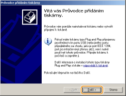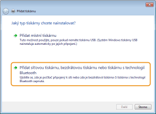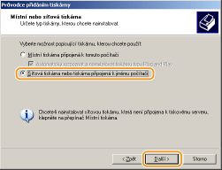 Vyberte možnost [Síťová tiskárna nebo tiskárna připojená k jinému počítači] a klikněte na tlačítko [Další].