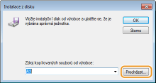 Instalace ovladače tiskárny vyžaduje „User Software DVD“ (DVD s uživatelským softwarem). Vložte disk „User Software DVD“ (DVD s uživatelským softwarem) do jednotky v počítači a poté zahajte postup.