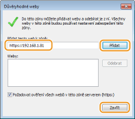 Ujistěte se, že je zobrazeno „https://<IP adresy zařízení> nebo <název hostitele zařízení>.<název domény>/“ a klikněte na položku [Přidat]