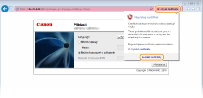 Klikněte na [Chyba certifikátu]