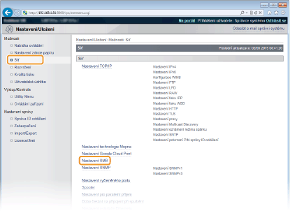 SMB je povoleno jen když je v tiskárně instalována volitelná SD karta.