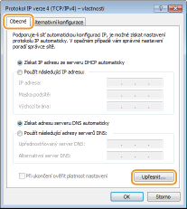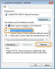 Zaškrtněte políčko [Protokol IP verze 4 (TCP/IPv4)] nebo [Protokol sítě Internet] a klikněte na [Vlastnosti].