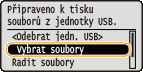 Pokud složka na paměťovém zařízení USB obsahuje mnoho souborů, bude načítání obrazových souborů k tisku trvat poměrně dlouho. Nepotřebné soubory můžete s využitím počítače z paměťového zařízení USB odstranit nebo je přesunout do jiné složky.