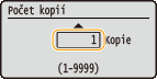 Zadejte počet kopií od 1 do 9999. Počet zadejte pomocí číselných tlačítek a stiskněte