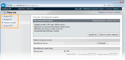 Můžete vytisknout soubor z webového prohlížeče (vzdálené uživatelské rozhraní), aniž byste soubor otvírali. Navíc můžete tisknout také soubor PDF přímo z webu, a to po zadání URL.