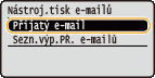 Vyberte možnost <Přijatý e-mail> a stiskněte tlačítko
