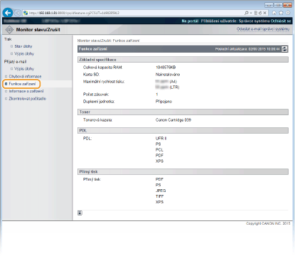 Pokud je v tiskárně vložena karta SD, velikost dat odesílaného e-mailu musí být maximálně 1,5 GB.