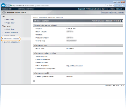 Zobrazí se historie až 16 e-mailů vytištěných po přijetí (až 128 dokumentů, když je vložena karta SD).