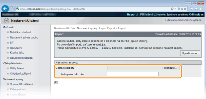 Zadejte soubor nastavení, který má být importován, a zadejte heslo.