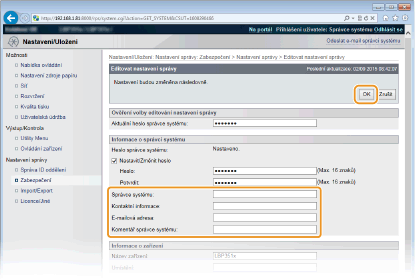 Zadejte podle potřeby jméno správce systému a kontaktní informace a klikněte na [OK].