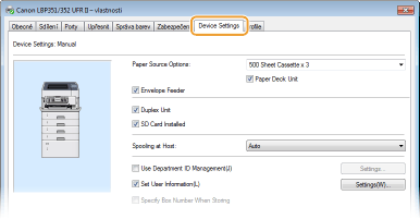 Klikněte na kartu [Device Settings] (Nastavení zařízení) a zadejte požadované nastavení.