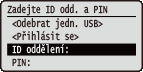 Pokud je pro ID oddělení nastaven kód PIN, zadejte číslo obsahující maximálně sedm číslic.