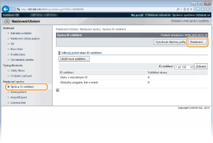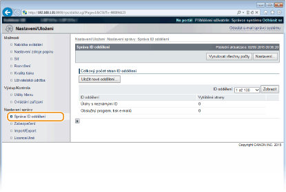 Klikněte na položku [Správa ID oddělení] a uložte či upravte příslušná ID oddělení.