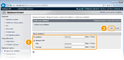 Zaškrtněte políčka [Použít potvrzení PIN správy ID oddělení]