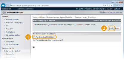 Zaškrtněte políčko [Povolit správu ID oddělení] a klikněte na tlačítko [OK].