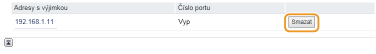 Vyberte adresu IP, kterou chcete vymazat, a klikněte na možnost [Smazat].