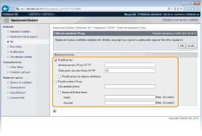 Zaškrtněte políčko [Použít proxy] a zadejte požadovaná nastavení.