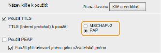 Zaškrtněte políčko [Použít TTLS] nebo [Použít PEAP].