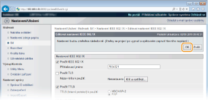 Ověřování IEEE 802.1X můžete povolit nebo zakázat také z nabídky nastavení na ovládacím panelu. IEEE802.1X