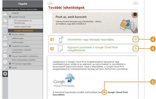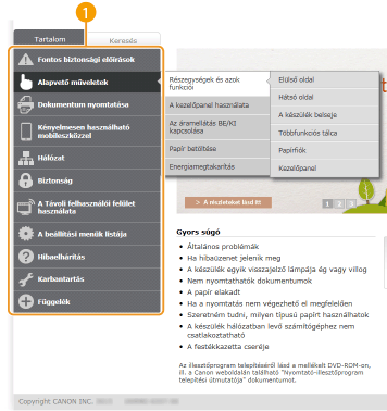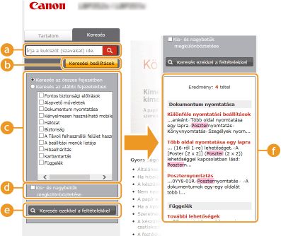 Kattintson az e-Kézikönyv megtekintésével, keresések végrehajtásával kapcsolatos és más információk megjelenítéséhez.