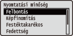 Rövid leírás kíséretében ismertetjük a nyomtatási minőség beállításait, többek között a felbontást és a fedettséget. Az alapértelmezett beállítások mellett a (