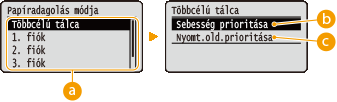 <Sebesség prioritása> vagy <Nyomt.old.prioritása>
