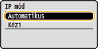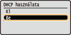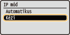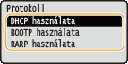 Válassza a <DHCP használata>, <BOOTP használata> vagy <RARP használata> lehetőséget, és nyomja meg az