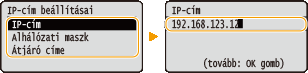 Válassza ki a <IP-cím beállításai> lehetőséget, és nyomja meg az