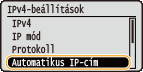 Válassza ki a <Automatikus IP-cím> lehetőséget, és nyomja meg az