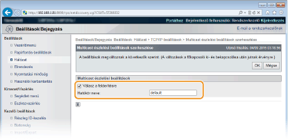 Jelölje be ezt a jelölőnégyzetet, ha azt szeretné, hogy a készülék válaszoljon az eszközfelügyeleti szoftver multicast keresési csomagjaira és engedélyezze az eszközfelügyeleti szoftver általi figyelést. Ha nem szeretné beállítani, hogy a készülék válaszoljon, akkor törölje a jelet a jelölőnégyzetből. [Hatókör neve]