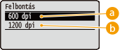 Adja meg a nyomtatáshoz használandó felbontást. Használja a következő gombokat