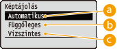 Amennyiben a <Függőleges> vagy a <Vízszintes> pontban megadott beállítás nem illeszkedik a kép tájolásához, akkor a kép kicsinyítve kerül nyomtatásra.