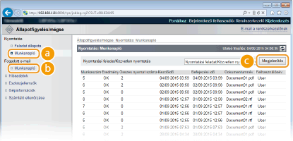 A részlegazonosító-kezelés beállításaitól függetlenül valamennyi nyomtatási feladat állapota megjelenik.
