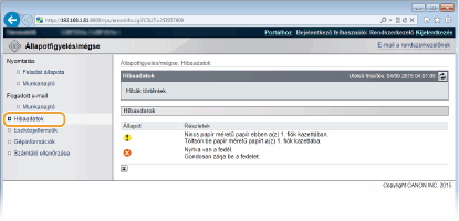 Tegye meg a készülék képernyőjén megjelenő üzenetnek megfelelő lépéseket. Ha hibaüzenet jelenik meg