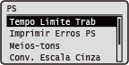 Todas as configurações de comandos de controle de PS são listadas com descrições curtas. As configurações padrão são marcadas com uma cruz (