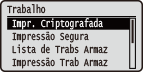 ( ) no painel de operação, o menu Trabalho é exibido. Você pode especificar as definições descritas abaixo quando a máquina está offline. |