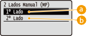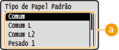 Configurações comunsAs configurações são as mesmas que as de <Fonte de Papel> em Menu de Configuração. As configurações especificadas aqui também são aplicadas às configurações de <Fonte de Papel>.