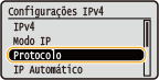 Selecione <Usar DHCP>, <Usar BOOTP> ou <Usar RARP> e pressione