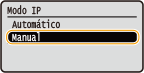 Selecione <IP Automático> e pressione