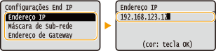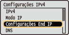 Selecione <Configurações End IP> e pressione