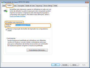 A instalação dos drivers adicionais começa. Aguarde até que a guia [Compartilhamento] seja reexibida.