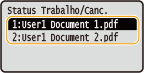 Cancelando da Interface RemotaVocê pode cancelar a impressão a partir da página [Status do Trabalho] na Interface Remota: Verificando o status atual dos documentos impressos