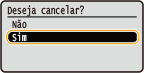 Cancelando a partir de um aplicativoEm alguns aplicativos, uma tela como a mostrada abaixo é exibida. Você pode cancelar a impressão clicando em [Cancelar].