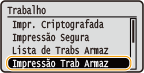 para selecionar <Impressão Trab Armaz> e pressione