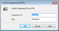 Quando você tenta imprimir ou enviar um fax de um computador quando o Gerenciamento de IDs do departamento estiver ativado, a seguinte tela pop-up é exibida (a menos que a caixa de seleção [Confirmar ID/PIN do departamento ao imprimir] esteja limpa):