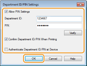 Marque a caixa de seleção [Usar Confirmação de PIN de Gerenciamento de ID de Departamento]