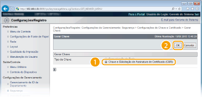 Selecione [Chave e Solicitação de Assinatura de Certificado (CSR)] e clique em [OK].