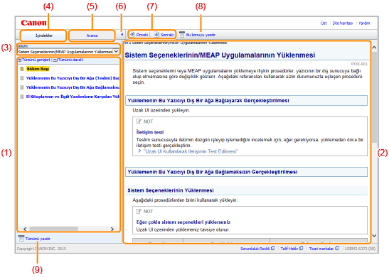 Bu, bölümün içeriğine ait listedir. Herhangi bir öğe tıklatıldığında, başlık sayfasındaki açıklama görüntülenir.