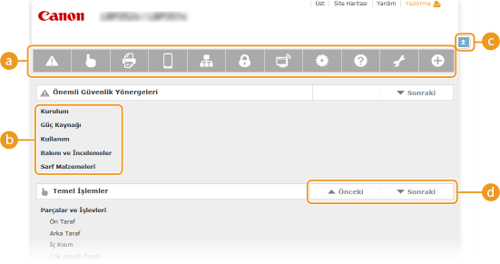 [Hızlı Yardım] / [Sorunların Giderilmesi] / [Bakım]