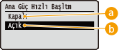 Eğer hızlı başlat işlevi etkin iken bir otomatik kapanma zamanlayıcısı işlevi uygularsanız, bir hızlı KAPAT gerçekleştirilir. Otomatik Kapatma Zamanını Ayarlama